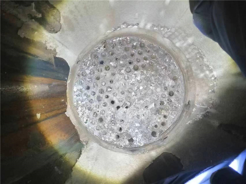 2022年8月12日河南都市機(jī)械設(shè)備有限公司馮經(jīng)理坐鎮(zhèn)指揮,技術(shù)員喬俊陽(yáng)、都紅植積極配合,與新疆哈密市,新疆湖晟新材料科技有限公司張總,針對(duì)兩臺(tái)熱水缶,(廢水處理蒸發(fā)器)多年沒有解決了的結(jié)垢堅(jiān)硬堵死的管子內(nèi)徑38毫米長(zhǎng)度6米難題,使用特別加長(zhǎng)的加粗軟軸,進(jìn)行一步到位的疏通清理,過去奔著報(bào)廢處理的設(shè)備又重新煥發(fā)生機(jī),即節(jié)約資金損耗又減少了工作時(shí)間,大大的為企業(yè)提高了效益,深受化工廠化肥廠鋼廠電廠制氧廠水泥廠糠醛廠青睞和歡迎!